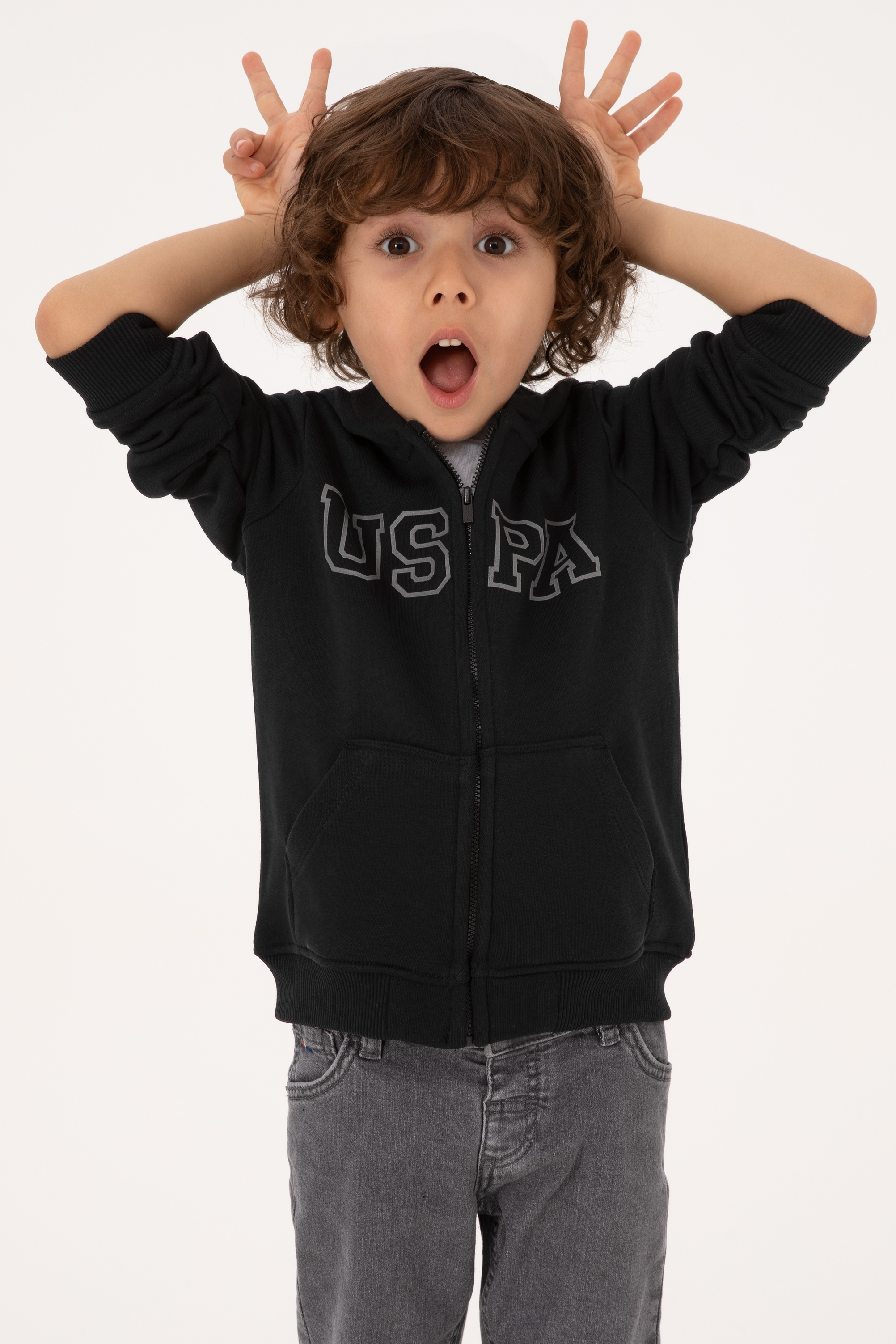 سویشرت کلاهدار مشکی زیپدار رگولار پسرانه یو اس پولو | U.S. Polo Assn.