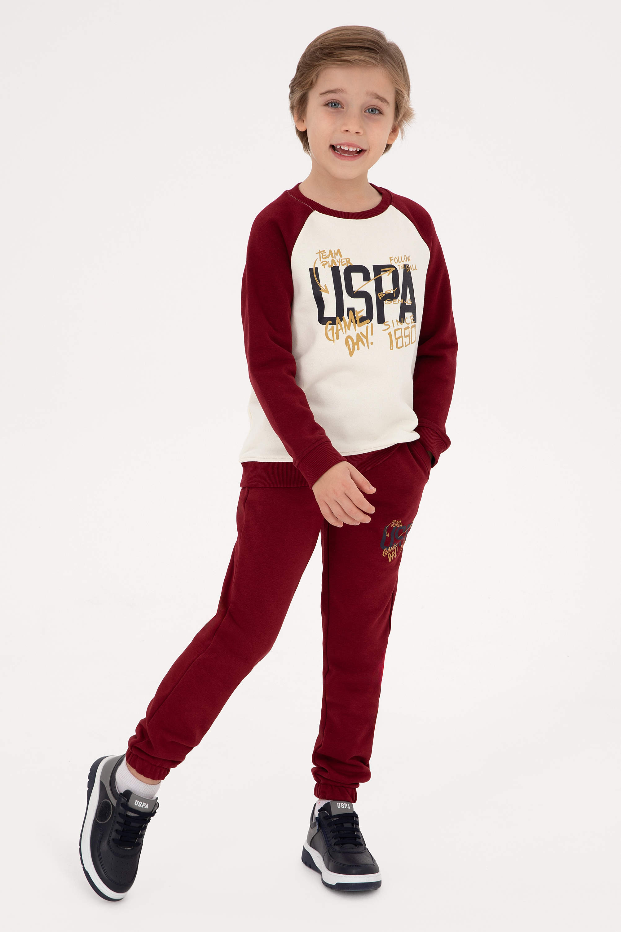 سویشرت یقه گرد زرشکی ریلکس پسرانه یو اس پولو | U.S. Polo Assn.