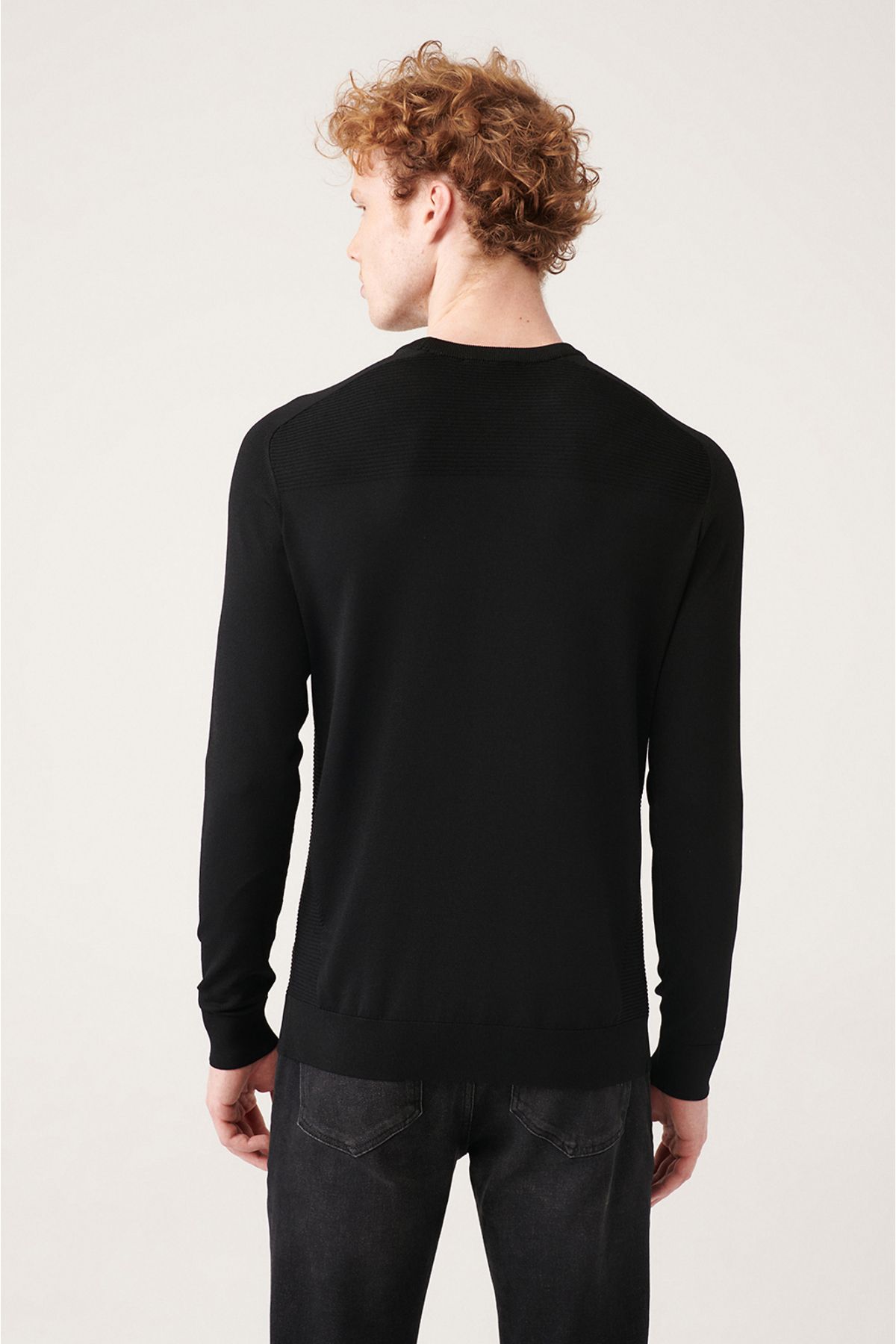 خرید اینترنتی تی شرت مردانه طرح ژاکارد طرح ابریشم مصنوعی یقه گرد مشکی A31Y5004 برند آوا Avva از فروشگاه ایران یو اس پولو