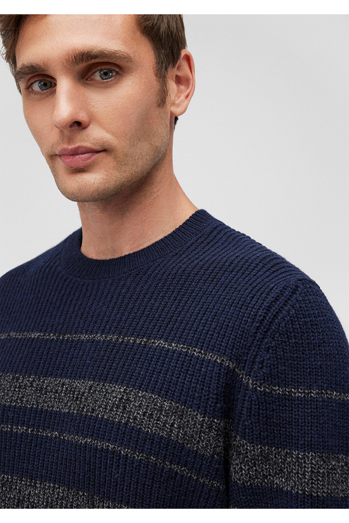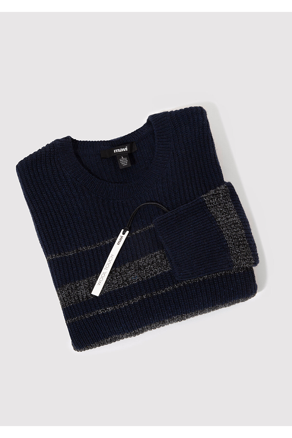 خرید اینترنتی ژاکت پشمی راه راه سرمه‌ای، فیت باریک / برش باریک، 0710209-70490 برند ماوی Mavi از فروشگاه ایران یو اس پولو