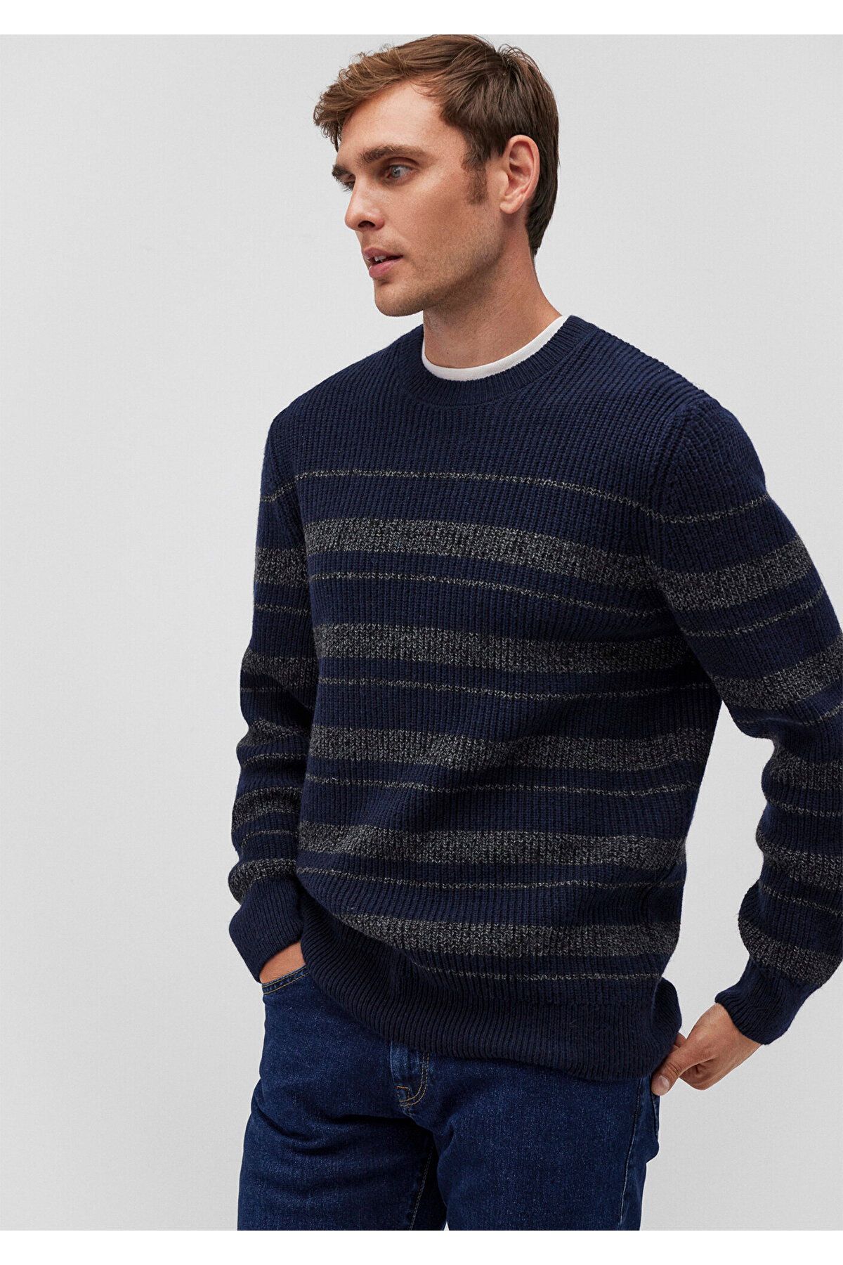 بافت مردانه راه راه آستین استاندارد | ماوی Mavi 710209