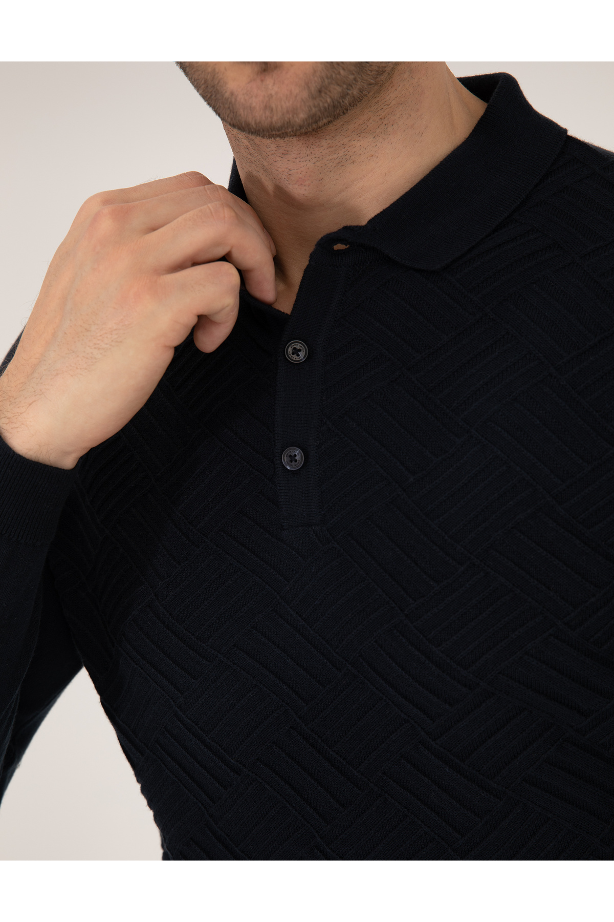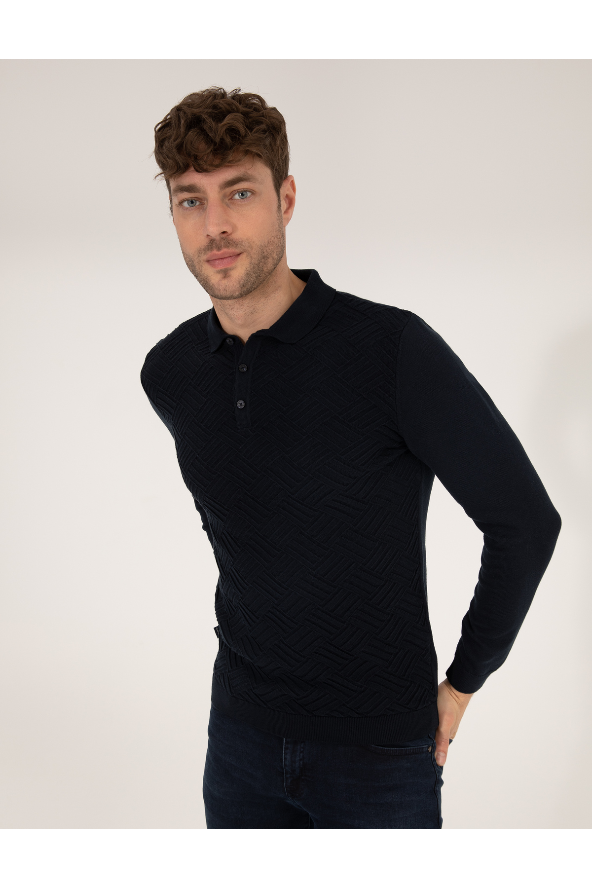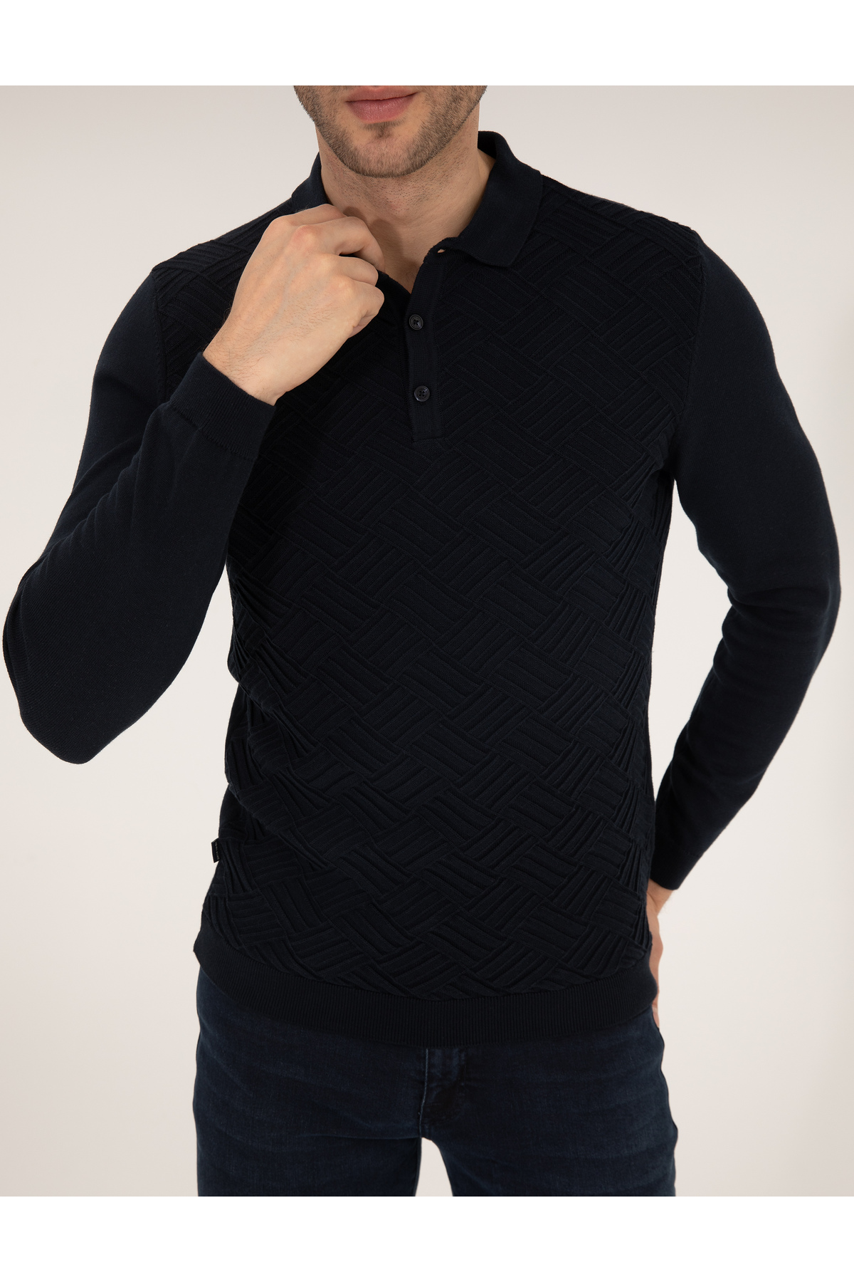 خرید اینترنتی پلیور بافتنی یقه اسکی یقه دار سرمه ای اسلیم فیت 50265441-VR033 برند پیر کاردین Pierre Cardin از فروشگاه ایران یو اس پولو