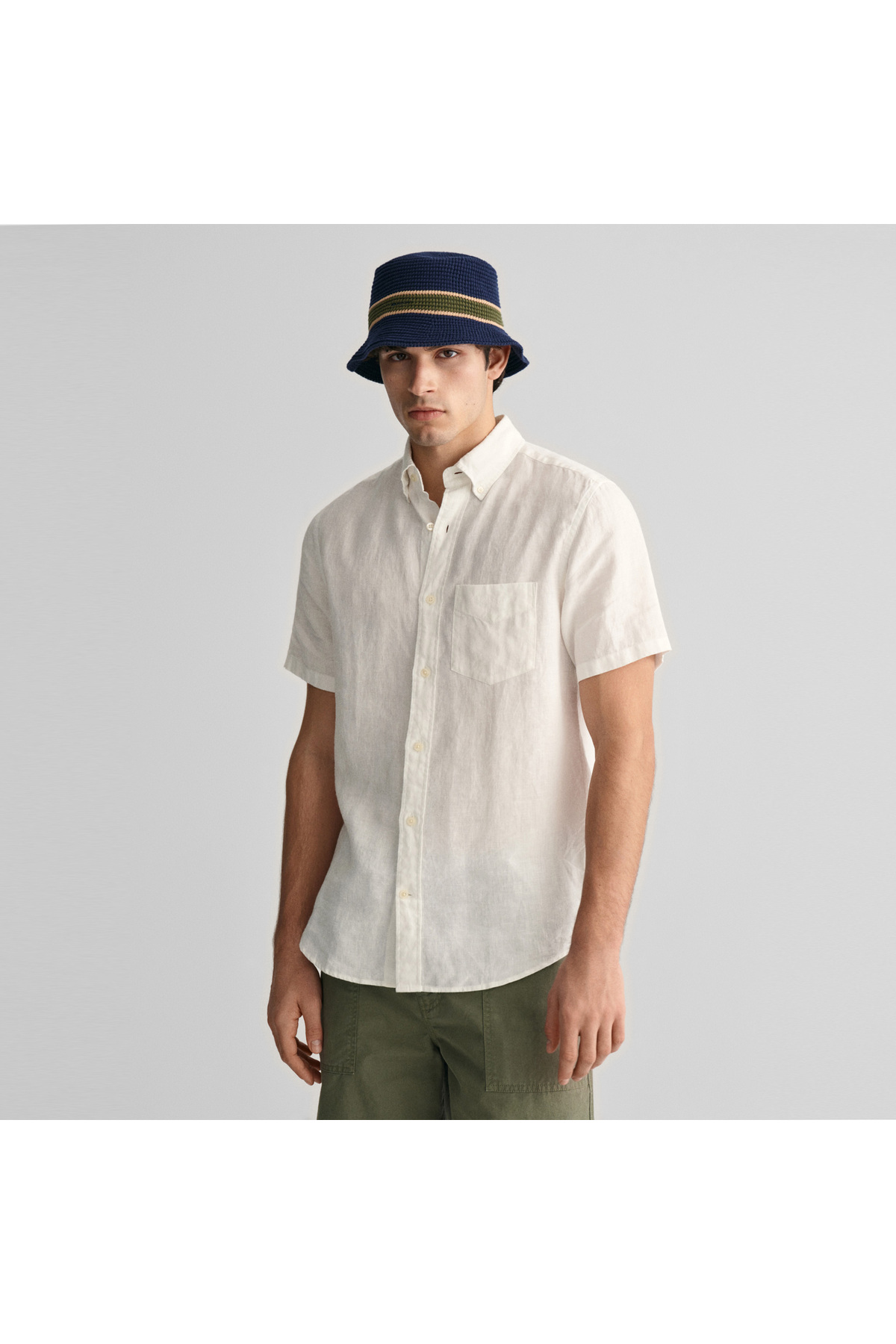 خرید اینترنتی پیراهن مردانه کتان یقه دکمه‌دار سفید معمولی برند گنت Gant از فروشگاه ایران یو اس پولو